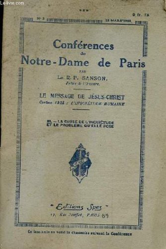 Free Conferences de notre-dame de paris, n° 3, 15 mars 1925, le message de jesus-christ, careme 1925: l'inquietude humaine PDF Download