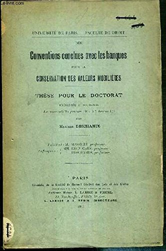 DES CONVENTIONS CONCLUES AVEC LES BANQUES POUR LA CONSERVATION DES VALEURS MOBILIERES - THESE POUR LE DOCTORAT - PRESENTE ET SOUTENUE LE MERCREDI 25 JANVIER 1905 - UNIVERSITE DE PARIS - FACULTE DE DROIT PDF Kindle