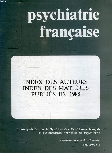 Free Psychiatrie francaise, index des auteurs et matieres 1985 PDF Download